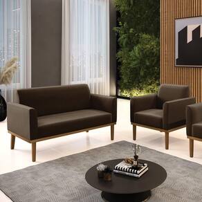 Sofá Namoradeira Com Poltrona Base De Madeira Fixa Castanho Marisa Suede D03 - D?rossi Cor Marrom