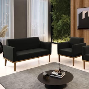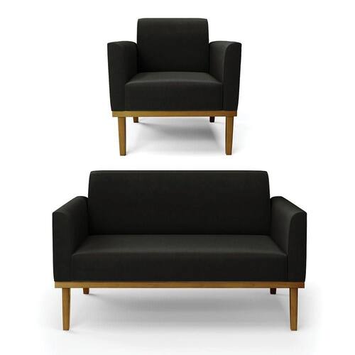 Sofá Namoradeira Com Poltrona Base De Madeira Fixa Castanho Marisa Suede Preto D03 - D?rossi