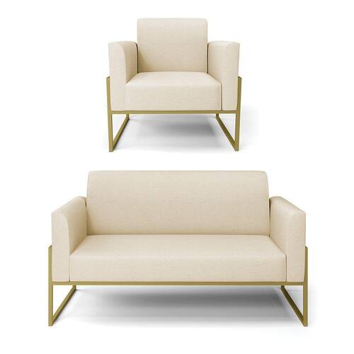 Todo mundo gosta de um ambiente bem decorado, e se for novidade melhor ainda não é mesmo? A D'Rossi, além de entregar beleza, qualidade e confiança aos clientes, ela dispõe das melhores opções em produtos, disponíveis no mercado! Se você quer um produto sofisticado, opte pelo Sofá Namoradeira com Poltrona Marisa. Este kit dispõe de um tom lindo no Bege, uma cor leve, neutra e delicada que combina com qualquer estilo de decoração. Ele fica perfeito na sala, escritório, quarto, varanda coberta e onde mais preferir! Sua estrutura é feita em madeira reforçada de eucalipto proveniente de reflorestamento. No assento/encosto contém um revestimento no tecido Linho, com estofamento em espuma prorelax D-23, garantindo maior conforto ao usuário. A sustentação da peça é dada pela Base Industrial Alta Dourado, garantindo uma resistência melhor, para relaxar o dia todo com mais comodidade. O Sofá Namoradeira com Poltrona Marisa é ideal, para dar aquele realce que seu ambiente precisa. Tenho certeza que, esse móvel é a melhor compra que você irá fazer. Garanta já seu Kit e se acomode da melhor maneira possível!