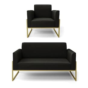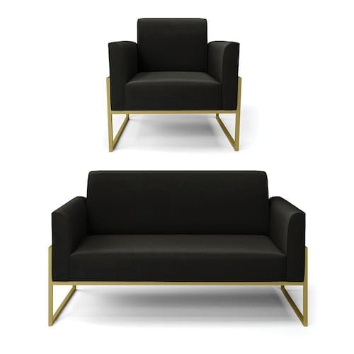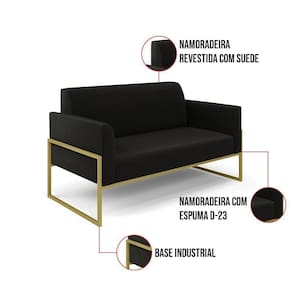 Sofá Namoradeira Com Poltrona Base Industrial Alta Dourado Marisa Suede D03 - D\\'rossi Cor Preto