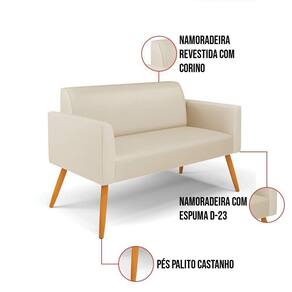 Todo mundo gosta de um ambiente bem decorado, e se for novidade melhor ainda não é mesmo? A DRossi, além de entregar beleza, qualidade e confiança aos clientes, ela dispõe das melhores opções em produtos, disponíveis no mercado! Se você quer um produto sofisticado, opte pelo Sofá Namoradeira Marisa. Ele dispõe de um tom lindo, uma cor leve, neutra e delicada que combina com qualquer estilo de decoração. Esta mobília fica perfeita na sala, escritório, quarto, varanda coberta e onde mais preferir! Sua estrutura é feita em madeira reforçada de eucalipto proveniente de reflorestamento. No assento/encosto contém um revestimento no tecido Corino, com estofamento em espuma prorelax D-23, garantindo maior conforto ao usuário. A sustentação da peça é dada pelos Pés Palito Castanho, garantindo uma resistência melhor, para relaxar o dia todo com mais comodidade. O Sofá Namoradeira Marisa é ideal, para dar aquele realce que seu ambiente precisa. Tenho certeza que, esse móvel é a melhor compra que você irá fazer. Garanta já seu Sofá Namoradeira e se acomode da melhor maneira possível!