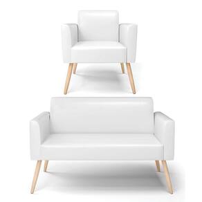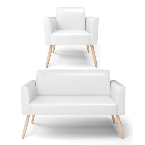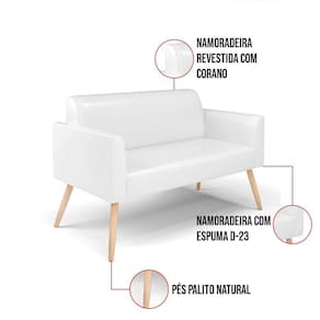 Sofá Namoradeira Com Poltrona Pés Palito Natural Marisa Corano Branco D03 - D'rossi