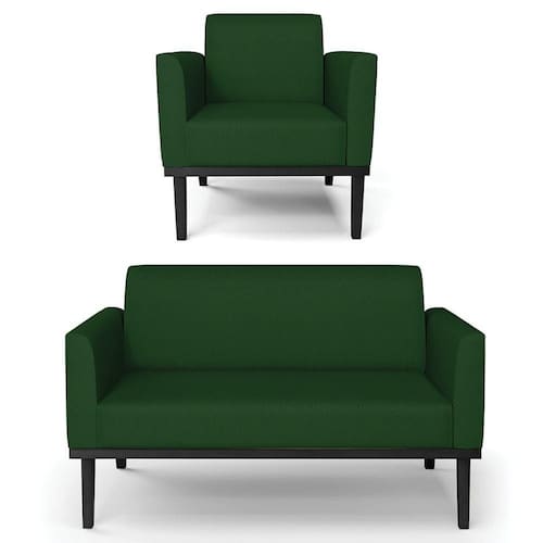 O Sofá Namoradeira e a Poltrona Decorativa são revestidos em sintético, que é fácil de limpar e valoriza o design das peças. Eles têm braços e encosto em espuma D-18 e assento em espuma D-26, que oferecem firmeza e aconchego para você relaxar. A base industrial é um detalhe charmoso, que dá um toque moderno e sofisticado ao conjunto. O kit tem uma estrutura resistente e suporta até 120 kg cada peça. A montagem é simples, pois as peças já vêm prontas, bastando fixar a base com os parafusos que acompanham o produto. A limpeza é prática, pois basta usar um pano limpo e levemente úmido, sem produtos abrasivos, para manter o seu kit sempre em bom estado. Hora de transformar seu ambiente com a Namoradeira 2 Lugares e a Poltrona para Sala deixando ainda mais confortável e estiloso.