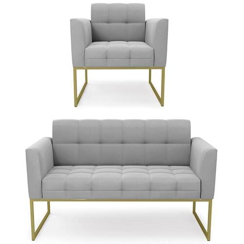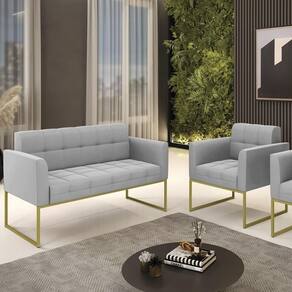 O Sofá Namoradeira e 1 Poltrona Base Industrial Dourado Ana Suede Cinza, da Ibiza é o conjunto ideal para quem busca beleza, conforto e versatilidade. Você pode usar na sua Sala De Estar, recepção ou qualquer outro ambiente que desejar.