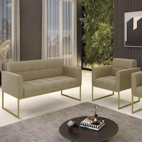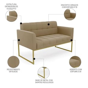 O Sofá Namoradeira e 1 Poltrona Base Industrial Dourado Ana Suede Marrom RT, da Ibiza é o conjunto ideal para quem busca beleza, conforto e versatilidade. Você pode usar na sua Sala De Estar, recepção ou qualquer outro ambiente que desejar.