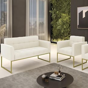 O Sofá Namoradeira e 1 Poltrona Base Industrial Dourado Ana Veludo Bege, da Ibiza é o conjunto ideal para quem busca beleza, conforto e versatilidade. Você pode usar na sua Sala De Estar, recepção ou qualquer outro ambiente que desejar.