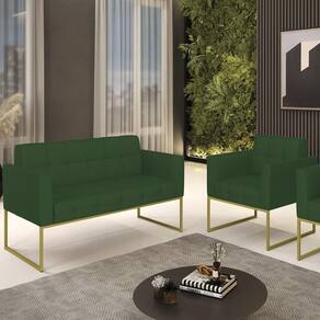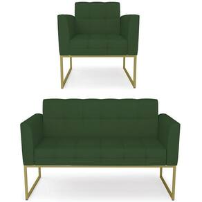 O Sofá Namoradeira e 1 Poltrona Base Industrial Dourado Ana Veludo Luxo Verde, da Ibiza é o conjunto ideal para quem busca beleza, conforto e versatilidade. Você pode usar na sua Sala De Estar, recepção ou qualquer outro ambiente que desejar.