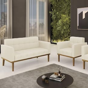 O Sofá Namoradeira e 1 Poltrona Base Madeira Castanho Ana Linho Bege, da Ibiza é o conjunto ideal para quem busca beleza, conforto e versatilidade. Você pode usar na sua Sala De Estar, recepção ou qualquer outro ambiente que desejar.