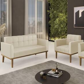 O Sofá Namoradeira e 1 Poltrona Base Madeira Castanho Ana Sintético Bege, da Ibiza é o conjunto ideal para quem busca beleza, conforto e versatilidade. Você pode usar na sua Sala De Estar, recepção ou qualquer outro ambiente que desejar.