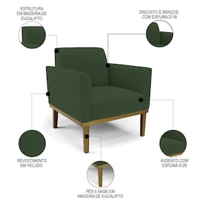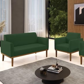 O Sofá Namoradeira e 1 Poltrona Base Madeira Castanho Maressa Veludo Verde, da Ibiza é o conjunto ideal para quem busca beleza, conforto e versatilidade. Você pode usar na sua Sala De Estar, recepção ou qualquer outro ambiente que desejar.