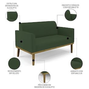 Sofá Namoradeira E 1 Poltrona Base Madeira Castanho Maressa Veludo Verde - Ibiza
