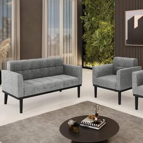 O Sofá Namoradeira e 1 Poltrona Base Madeira Preto Ana Linho Grafite, da Ibiza é o conjunto ideal para quem busca beleza, conforto e versatilidade. Você pode usar na sua Sala De Estar, recepção ou qualquer outro ambiente que desejar.