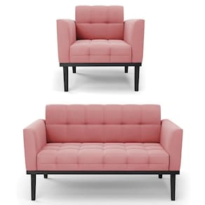 O Sofá Namoradeira e 1 Poltrona Base Madeira Preto Ana Suede Rosê, da Ibiza é o conjunto ideal para quem busca beleza, conforto e versatilidade. Você pode usar na sua Sala De Estar, recepção ou qualquer outro ambiente que desejar.