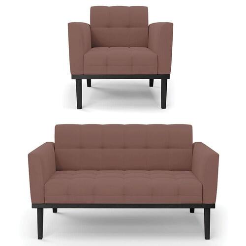 O Sofá Namoradeira e 1 Poltrona Base Madeira Preto Ana Veludo Rosê, da Ibiza é o conjunto ideal para quem busca beleza, conforto e versatilidade. Você pode usar na sua Sala De Estar, recepção ou qualquer outro ambiente que desejar.