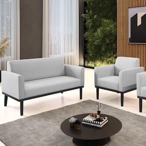 O Sofá Namoradeira e 1 Poltrona Base Madeira Preto Maressa Linho Cinza, da Ibiza é o conjunto ideal para quem busca beleza, conforto e versatilidade. Você pode usar na sua Sala De Estar, recepção ou qualquer outro ambiente que desejar.