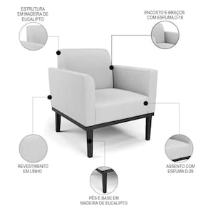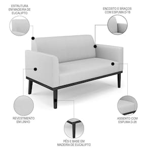 O Sofá Namoradeira e a Poltrona Decorativa são revestidos em Linho, que é fácil de limpar e valoriza o design das peças. Eles têm braços e encosto em espuma D-18 e assento em espuma D-26, que oferecem firmeza e aconchego para você relaxar. A base em madeira de eucalipto Preto é um detalhe charmoso, que dá um toque rústico e sofisticado ao conjunto. O kit tem uma estrutura resistente e suporta até 120 kg cada peça. A montagem é simples, pois as peças já vêm prontas, bastando fixar a base com os parafusos que acompanham o produto. A limpeza é prática, pois basta usar um pano limpo e levemente úmido, sem produtos abrasivos, para manter o seu kit sempre em bom estado. Hora de transformar seu ambiente com a Namoradeira 2 Lugares e a Poltrona para Sala deixando ainda mais confortável e estiloso.