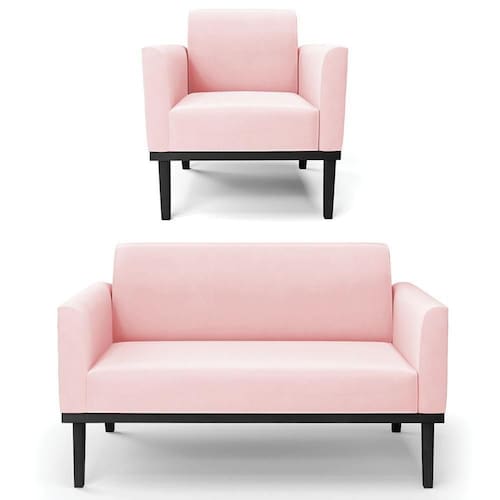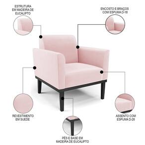 O Sofá Namoradeira e 1 Poltrona Base Madeira Preto Maressa Suede Rosa Bebê, da Ibiza é o conjunto ideal para quem busca beleza, conforto e versatilidade. Você pode usar na sua Sala De Estar, recepção ou qualquer outro ambiente que desejar.