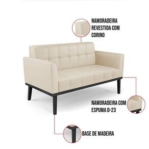Você gosta de colecionar vários momentos memoráveis com sua família e amigos? Que tal recebê-los, com móveis de altíssima qualidade que só a D'Rossi tem? O Sofá Sofá Namoradeira e Poltrona Elisa é adequado para você! Seu design retrô é a grande tendência do momento. Pode ser utilizado em diversos espaços da casa, em salas, hall de entrada, quartos, cozinhas, varanda, sacada, escritório, dentre outros. Contém as seguintes características: A estrutura é feita de madeira de Eucalipto 100% de reflorestamento, e a Base de Madeira Fixa Preto, além de ser resistente e durável, suporta em média até 120 kg. Assento, encosto e braços, contém enchimento de espuma D-23 e é estofada em tecido Corino, que oferece muito conforto e resistência ao sentar, com aquela sensação de maciez e aconchego. Possui também, detalhes de costura no encosto e assento, resultando em um acabamento impecável, conferindo muito mais valor e elegância ao seu espaço. Para complementar a decoração com esse lindo Kit Sofá Namoradeira e Poltrona Elisa, a dica é utilizar mantas, almofadas ou vasinho de flor. E pronto, seu cantinho estará perfeito para descansar e relaxar! Aqui, você encontra várias opções, para que seus amigos e familiares se sintam acolhidos. Garanta já seu Kit Sofá Namoradeira e 2 Poltronas Elisa.