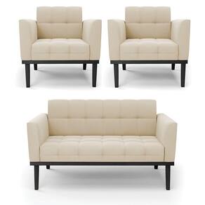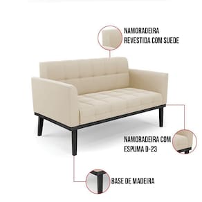 Sofá Namoradeira E 2 Poltronas Base De Madeira Preto Elisa Suede D03 - D'rossi Cor Bege