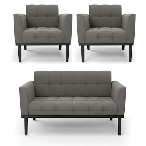 Você gosta de colecionar vários momentos memoráveis com sua família e amigos? Que tal recebê-los, com móveis de altíssima qualidade que só a D'Rossi tem? O Sofá Sofá Namoradeira e Poltrona Elisa é adequado para você! Seu design retrô é a grande tendência do momento. Pode ser utilizado em diversos espaços da casa, em salas, hall de entrada, quartos, cozinhas, varanda, sacada, escritório, dentre outros. Contém as seguintes características: A estrutura é feita de madeira de Eucalipto 100% de reflorestamento, e a Base de Madeira Fixa Preto, além de ser resistente e durável, suporta em média até 120 kg. Assento, encosto e braços, contém enchimento de espuma D-23 e é estofada em tecido Suede, no tom Grafite, que oferece muito conforto e resistência ao sentar, com aquela sensação de maciez e aconchego. Possui também, detalhes de costura no encosto e assento, resultando em um acabamento impecável, conferindo muito mais valor e elegância ao seu espaço. Para complementar a decoração com esse lindo Kit Sofá Namoradeira e Poltrona Elisa, a dica é utilizar mantas, almofadas ou vasinho de flor. E pronto, seu cantinho estará perfeito para descansar e relaxar! Aqui, você encontra várias opções, para que seus amigos e familiares se sintam acolhidos. Garanta já seu Kit Sofá Namoradeira e 2 Poltronas Elisa.