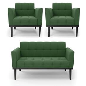 Sofá Namoradeira E 2 Poltronas Base De Madeira Preto Elisa Suede Verde D03 - D'rossi