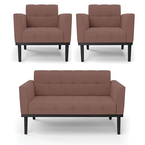 Você irá receber: 01 Sofá Namoradeira e 02 Poltronas - Entregue em: 03 Volumes