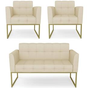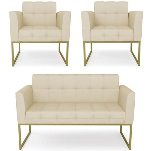 O Sofá Namoradeira e 2 Poltronas Base Industrial Dourado Ana Veludo Luxo Off White, da Ibiza é o conjunto ideal para quem busca beleza, conforto e versatilidade. Você pode usar na sua Sala De Estar, recepção ou qualquer outro ambiente que desejar.