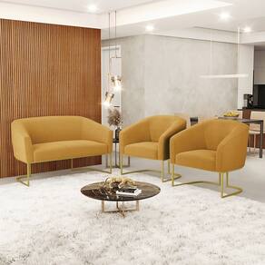 O Sofá Namoradeira 2 lugares e 2 Poltronas Stella é uma peça que combina elegância, conforto e durabilidade. Este conjunto tem um design moderno e sofisticado, com Base Industrial Dourado e revestimento em tecido Bouclê, que harmonizam com qualquer ambiente. Ele é ideal para sala de estar, recepções, mesa de jantar ou qualquer outro espaço que você queira decorar com estilo e bom gosto. Ele tem uma estrutura em madeira de reflorestamento eucalipto, que garante a resistência e a sustentabilidade do produto. Ele suporta até 120 kg de peso, podendo ser utilizado por pessoas de diferentes biotipos. Ele tem um acabamento reforçado e espuma de qualidade D23, que oferece maciez e aconchego. Tem pés em aço carbono e pintura eletrostática, que protegem o produto contra corrosão e desgaste. Ele tem assento com persintas elásticas, que proporcionam flexibilidade e conforto. O kit Stella é um produto de alta qualidade, beleza e funcionalidade. Ele é fácil de transportar, pois tem um peso leve e um tamanho compacto. O Sofá Namoradeira 2 lugares e 2 Poltronas Stella é um produto que vai fazer a diferença na sua decoração e no seu bem-estar. Ele vai trazer charme, conforto e durabilidade para o seu ambiente. Aproveite essa oferta e leve para casa um Sofá Namoradeira 2 lugares com Potrona qualidade por um preço incrível. Essa é a sua chance de ter um kit maravilhoso por um preço imperdível. Corra e garanta seu Sofá Namoradeira 2 lugares com Potrona antes que acabe o estoque!