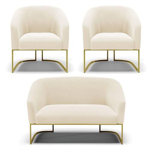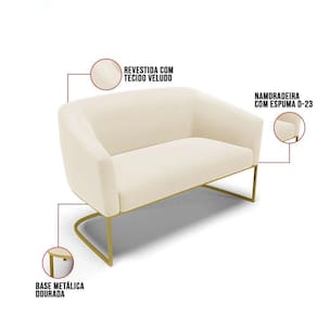 Sofá Namoradeira E 2 Poltronas Base Industrial Dourado Stella Veludo D03 - D'rossi Cor Bege