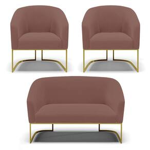 O Sofá Namoradeira 2 lugares e 2 Poltronas Stella é uma peça que combina elegância, conforto e durabilidade. Este conjunto tem um design moderno e sofisticado, com Base Industrial Dourado e revestimento em tecido Veludo Rosê, que harmonizam com qualquer ambiente. Ele é ideal para sala de estar, recepções, mesa de jantar ou qualquer outro espaço que você queira decorar com estilo e bom gosto. Ele tem uma estrutura em madeira de reflorestamento eucalipto, que garante a resistência e a sustentabilidade do produto. Ele suporta até 120 kg de peso, podendo ser utilizado por pessoas de diferentes biotipos. Ele tem um acabamento reforçado e espuma de qualidade D23, que oferece maciez e aconchego. Tem pés em aço carbono e pintura eletrostática, que protegem o produto contra corrosão e desgaste. Ele tem assento com persintas elásticas, que proporcionam flexibilidade e conforto. O kit Stella é um produto de alta qualidade, beleza e funcionalidade. Ele é fácil de transportar, pois tem um peso leve e um tamanho compacto. O Sofá Namoradeira 2 lugares e 2 Poltronas Stella é um produto que vai fazer a diferença na sua decoração e no seu bem-estar. Ele vai trazer charme, conforto e durabilidade para o seu ambiente. Aproveite essa oferta e leve para casa um Sofá Namoradeira 2 lugares e 2 Poltronas qualidade por um preço incrível. Essa é a sua chance de ter um kit maravilhoso por um preço imperdível. Corra e garanta seu Sofá Namoradeira 2 lugares e 2 Poltronas antes que acabe o estoque!