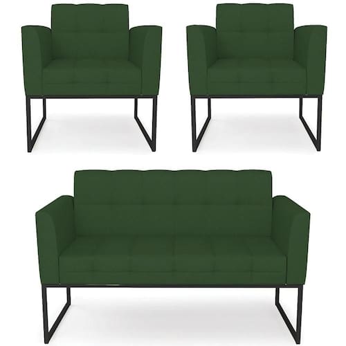 O Sofá Namoradeira e 2 Poltronas Base Industrial Preto Ana Veludo Luxo Verde, da Ibiza é o conjunto ideal para quem busca beleza, conforto e versatilidade. Você pode usar na sua Sala De Estar, recepção ou qualquer outro ambiente que desejar.