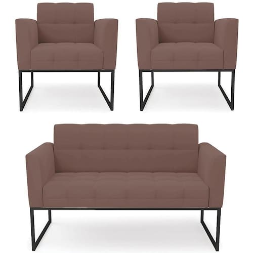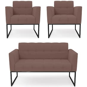 O Sofá Namoradeira e 2 Poltronas Base Industrial Preto Ana Veludo Rosê, da Ibiza é o conjunto ideal para quem busca beleza, conforto e versatilidade. Você pode usar na sua Sala De Estar, recepção ou qualquer outro ambiente que desejar.