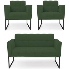 O Sofá Namoradeira e 2 Poltronas Base Industrial Preto Ana Veludo Verde, da Ibiza é o conjunto ideal para quem busca beleza, conforto e versatilidade. Você pode usar na sua Sala De Estar, recepção ou qualquer outro ambiente que desejar.