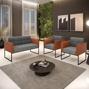 Você irá receber: 01 Sofá Namoradeira e 02 Poltronas - Entregue em: 03 Volumes