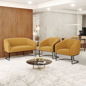Você irá receber: 01 Sofá Namoradeira e 02 Poltronas - Entregue em: 03 Volumes
