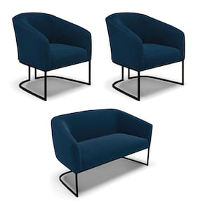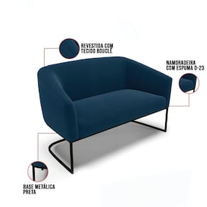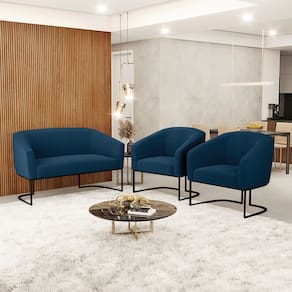 Sofá Namoradeira e 2 Poltronas Base Industrial Preto Stella Bouclê D03 - D`Rossi - Azul