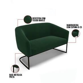Sofá Namoradeira e 2 Poltronas Base Industrial Preto Stella Bouclê D03 - D`Rossi - Verde Claro