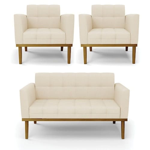 Você irá receber: 01 Sofá Namoradeira e 02 Poltronas - Entregue em: 03 Volumes