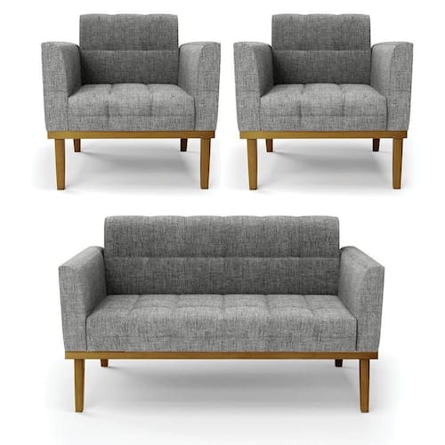 Você irá receber: 01 Sofá Namoradeira e 02 Poltronas - Entregue em: 03 Volumes