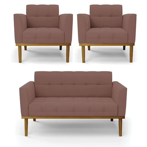 Você irá receber: 01 Sofá Namoradeira e 02 Poltronas - Entregue em: 03 Volumes