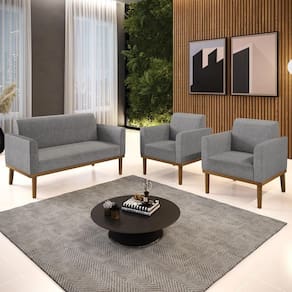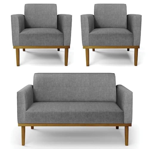 O Sofá Namoradeira e 2 Poltronas Base Madeira Castanho Maressa Linho Grafite, da Ibiza é o conjunto ideal para quem busca beleza, conforto e versatilidade. Você pode usar na sua Sala De Estar, recepção ou qualquer outro ambiente que desejar.