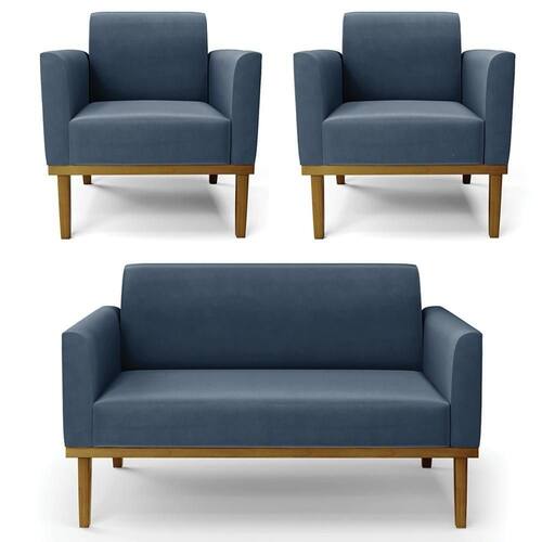 O Sofá Namoradeira e 2 Poltronas Base Madeira Castanho Maressa Suede Azul Marinho, da Ibiza é o conjunto ideal para quem busca beleza, conforto e versatilidade. Você pode usar na sua Sala De Estar, recepção ou qualquer outro ambiente que desejar.