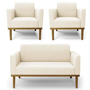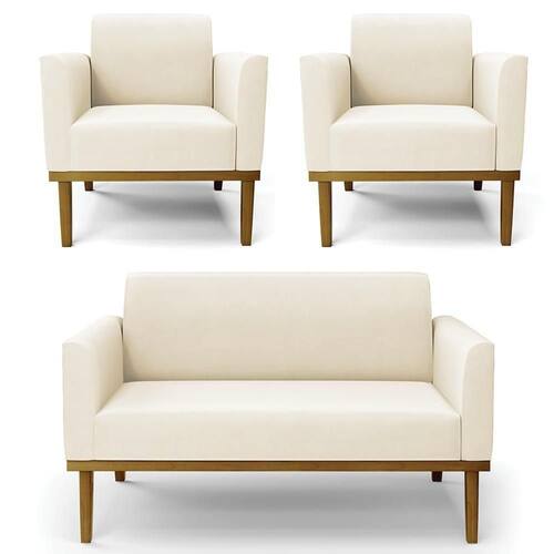 O Sofá Namoradeira e 2 Poltronas Base Madeira Castanho Maressa Veludo Bege, da Ibiza é o conjunto ideal para quem busca beleza, conforto e versatilidade. Você pode usar na sua Sala De Estar, recepção ou qualquer outro ambiente que desejar.
