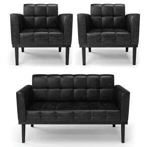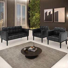 O Sofá Namoradeira e 2 Poltronas Base Madeira Preto Ana Sintético PU Preto, da Ibiza é o conjunto ideal para quem busca beleza, conforto e versatilidade. Você pode usar na sua Sala De Estar, recepção ou qualquer outro ambiente que desejar.