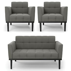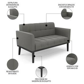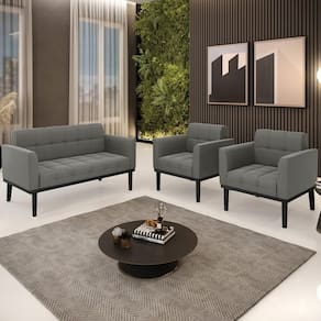 O Sofá Namoradeira e 2 Poltronas Base Madeira Preto Ana Suede Grafite, da Ibiza é o conjunto ideal para quem busca beleza, conforto e versatilidade. Você pode usar na sua Sala De Estar, recepção ou qualquer outro ambiente que desejar.