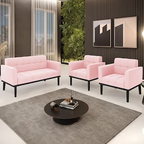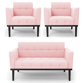 O Sofá Namoradeira e 2 Poltronas Base Madeira Preto Ana Suede Rosa Bebê, da Ibiza é o conjunto ideal para quem busca beleza, conforto e versatilidade. Você pode usar na sua Sala De Estar, recepção ou qualquer outro ambiente que desejar.