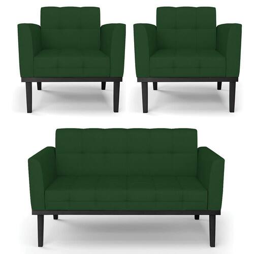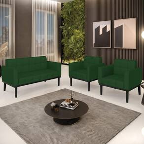 O Sofá Namoradeira e 2 Poltronas Base Madeira Preto Ana Veludo Luxo Verde, da Ibiza é o conjunto ideal para quem busca beleza, conforto e versatilidade. Você pode usar na sua Sala De Estar, recepção ou qualquer outro ambiente que desejar.