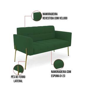 Sofá Namoradeira E 2 Poltronas Pé De Ferro Dourado Elisa Veludo D03 - D'rossi Cor Verde