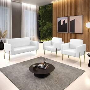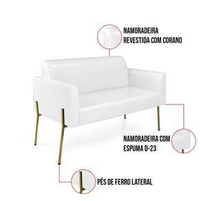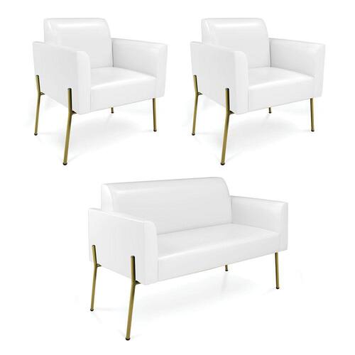 Sofá Namoradeira e 2 Poltronas Pé de Ferro Dourado Marisa Corano D03 - D`Rossi - Branco