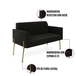 "Todo mundo gosta de um ambiente bem decorado, e se for novidade melhor ainda não é mesmo? A D'Rossi, além de entregar beleza, qualidade e confiança aos clientes, ela dispõe das melhores opções em produtos, disponíveis no mercado! Portanto, se você quer um produto sofisticado, opte pelo Sofá Namoradeira e Poltrona. Ele possui um design lindo e sofisticado, com pés de Ferro Lateral Dourado e revestimento em tecido Suede, que harmonizam com qualquer ambiente. Esta mobília fica perfeita na sala de estar, recepções, mesa de jantar ou qualquer outro espaço que você queira decorar com estilo e bom gosto. Ela contém uma estrutura em madeira de reflorestamento eucalipto, que garante a resistência e a sustentabilidade do produto. Ela suporta até 120 kg de peso, podendo ser utilizada por pessoas de diferentes biotipos. Ela tem um acabamento reforçado e espuma de qualidade D-23, garantindo flexibilidade e conforto ao usuário. O Sofá Namoradeira e Poltrona Marisa é um produto de alta qualidade, beleza e funcionalidade. Ele é fácil de transportar, pois tem um peso leve e um tamanho compacto. O Sofá Namoradeira e 2 Poltronas Marisa é ideal, para dar aquele realce que seu ambiente precisa. Tenho certeza que esse móvel é a melhor compra que você irá fazer. Garanta já seu Sofá Namoradeira e 2 Poltronas Marisa e se acomode da melhor maneira possível!